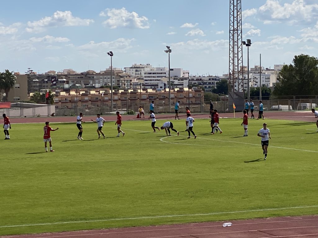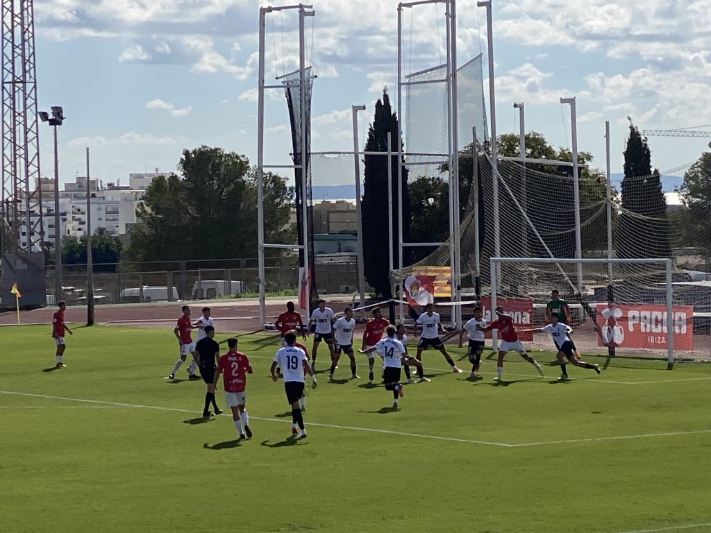 El choque arrancó con energía y con un VCF Mestalla valiente y decidido que avisó pronto por medio de Aimar Blázquez, cuyo potente disparo se estrelló en el lateral de la red. Sin embargo, la fortuna volvió a dar la espalda a los de Miguel Ángel Angulo en una jugada desafortunada en la que a Vicent Abril se le escapó de las manos un balón aparentemente sin peligro de Rubén Carretero que adelantaba a la SD Ibiza. Lejos de descomponerse, el filial valencianista asumió el mando del partido, monopolizó la posesión y trató de romper el muro pitiuso con más voluntad que acierto. Los de Raúl Casañ cedían metros a un incómodo ‘Mestalleta’ y buscaba dormir el encuentro, mientras Edu Frías sostenía al conjunto pitiuso con estiradas de mucho mérito ante los austados disparos de Mario Guilabert y Javi Navarro. Por su parte, Vicent Abril se redimió con una espectacular estirada para evitar el segundo tanto. El VCF Mestalla acabó la primera mitad instalado en campo contrario, con la sensación de que el gol podía llegar en cualquier momento y dejando buenas sensaciones pese a la desventaja con la que se marchó a vestuarios.
