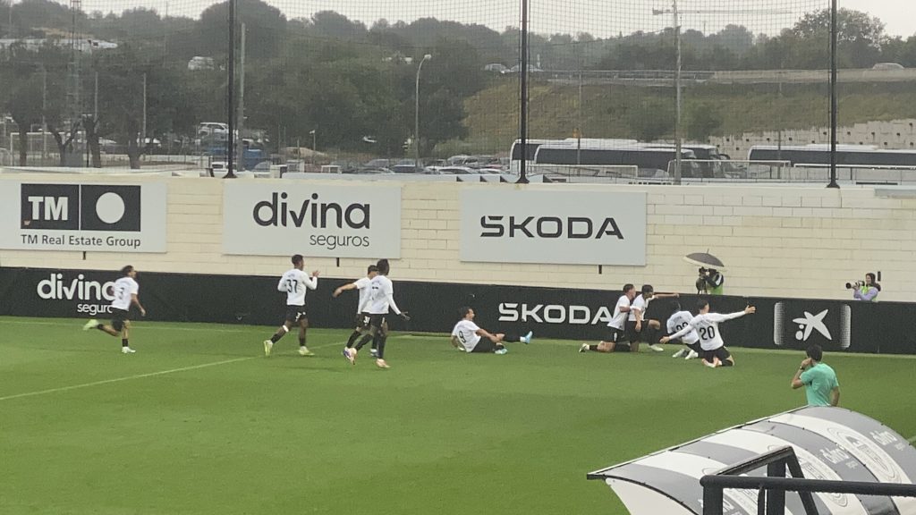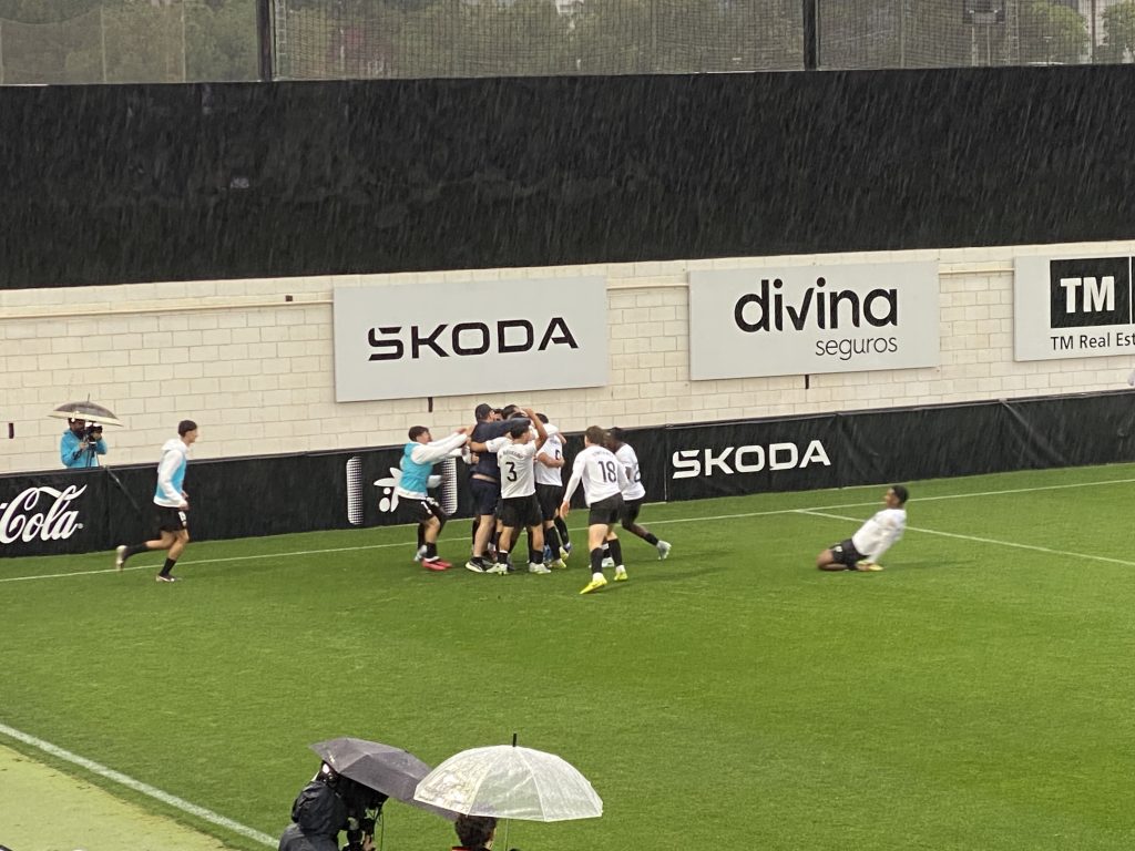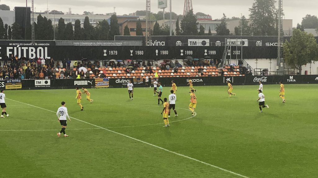 Victoria solvente y contundente (3-1) de un Valencia CF Mestalla que ha maniatado a la UE Sant Andreu en el Antonio Puchades en un duelo pasado por agua. Los de Óscar Sánchez, en un partido muy serio y eficaz, no han dado opción al líder y han pasado por encima suya siendo completamente superiores, hasta el punto de “hacer pequeña” a una UESA que apenas ha inquietado a un filial valencianista que se ha impuesto en todo momento y le ha “aguado” la fiesta del ascenso a un conjunto ‘quadribarrat’ que no perdía desde finales de noviembre. Victoria importantísima para escapar del play-out y mantener distancia con el descenso.