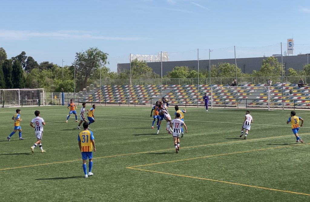 El Valencia CF Mestalla se ha llevado el derbi autonómico de filiales después de pasar por encima (0-4) del CD Castellón ‘B’ en las instalaciones deportivas “Gaetà Huguet”. Los de Óscar Sánchez, en otro muy buen partido en el que además han conseguido dejar la portería a 0, se han impuesto con contundencia en un duelo directo por la permanencia ante un segundo equipo ‘orellut’ que tan solo ha opuesto resistencia durante un pequeño tramo de la segunda parte. Partido muy completo de un filial valencianista que ha sabido manejar los tempos a la perfección: se adelantó por partida doble gracias a un arranque fulgurante, gestionó bien su ventaja, supo ‘sufrir’ el pequeño arreón local y ‘mató’ en el tramo final.