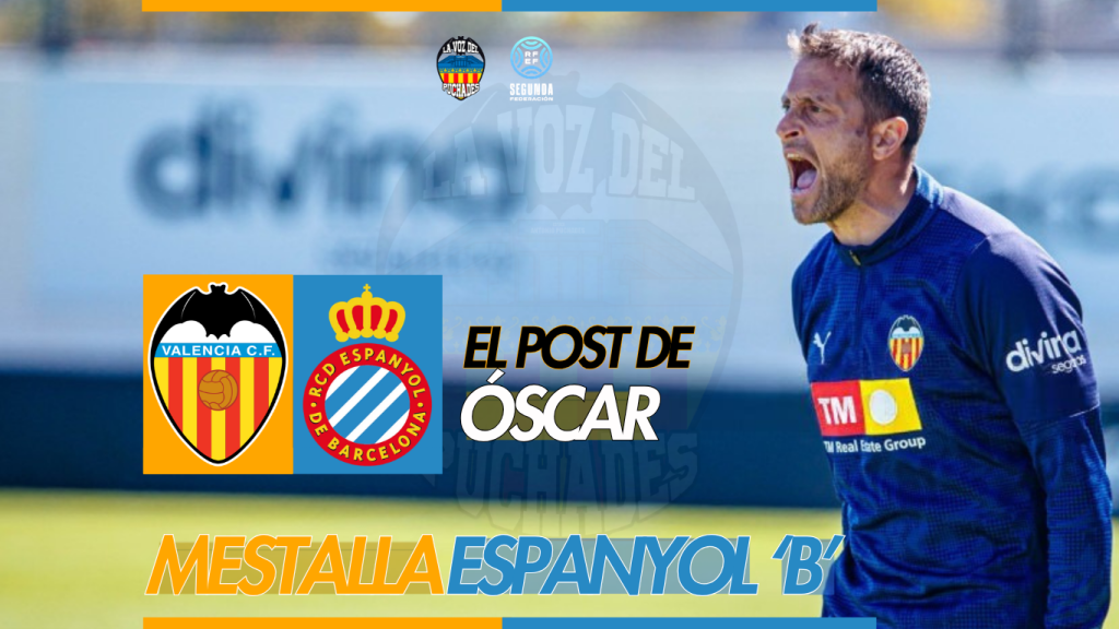 El Valencia CF Mestalla puso el punto y final a la temporada liguera en el Antonio Puchades goleando (3-0) al RCD Espanyol ‘B’ en un partido solvente y sin demasiados sobresaltos. Una victoria que, además, sellaba el billete de la permanencia para un filial valencianista que, tras una temporada muy sufrida en la que ha tenido que pegar un ‘sprint’ final estratosférico, volverá a competir en Segunda Federación el próximo curso. Óscar Sánchez ha valorado el buen hacer de unos chicos que, con él al mando del “Mestalleta”, han experimentado un cambio competitivo que ha tenido como consecuencia la salvación anticipada. Previa felicitación por el logro, el míster del VCF Mestalla ha invitado a sus jugadores a no relajarse y a competir hasta el final en la última jornada ante la UE Olot. El técnico murciano del filial valencianista atendió a los medios de comunicación en la rueda de prensa posterior al encuentro.