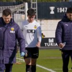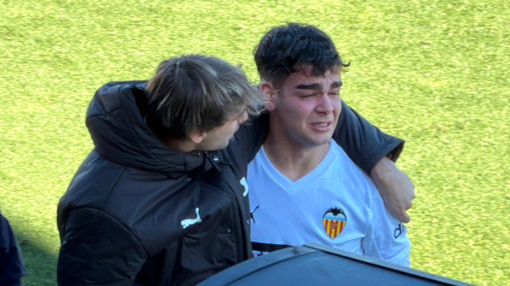 Al descanso, el futbolista malacitano se marchó cabizbajo a vestuarios con un aparatoso vendaje y hielo aplicado en la zona afectada, lo que hacía temer lo peor. Tras el encuentro, Miguel Ángel Angulo se mostró prudente en su primera valoración y evitó adelantar conclusiones, señalando que podía tratarse de un esguince o de una afectación en el menisco. En esa misma línea, el técnico del filial valencianista apuntó que, con la información disponible en ese momento, “parece que no hay ligamento roto”.